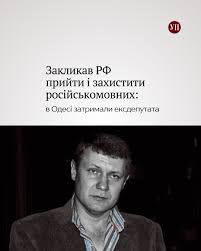 Деталі: За даними слідства, наприкінці лютого 2014 року депутат, діючи у змові з політиками держави-агресора, організував в Одесі масовий проросійський захід, де його учасники закликали керівництво РФ ввести війська на територію України нібито для “захисту прав російськомовного населення”.