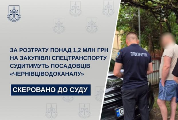 За розтрату понад 1,2 млн грн на закупівлі спецтранспорту судитимуть посадовців «Чернівціводоканалу» Прокурори Чернівецької обласної прокуратури скерували до суду обвинувальний акт стосовно генерального директора та провідного фахівця з публічних закупівель комунального підприємства «Чернівціводоканал». Їм інкримінують розтрату бюджетних коштів у особливо великих розмірах (ч. 5 ст. 191 КК України). За даними слідства, посадовці домовилися між собою […]