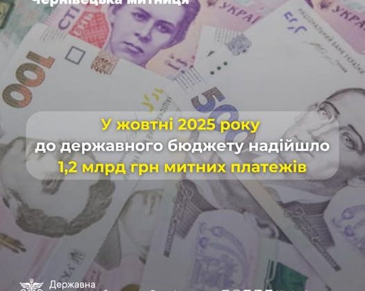 - Чернівецька митниця за жовтень перерахувала до держбюджету понад 1 млрд грн митних платежів 04.11.2025