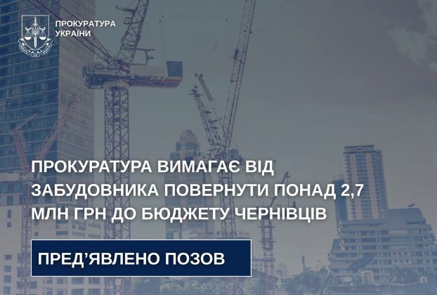 - Прокуратура вимагає від забудовника повернути понад 2,7 млн грн до бюджету Чернівців 15.10.2025