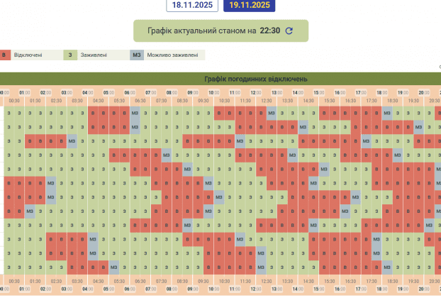 Орієнтовний графік заживлення для груп споживачів • 19.11.2025 Група 1 00:00 – 04:00 06:30 – 10:00 13:00 – 15:00 18:30 – 21:00 з 23:30 Група 2 00:00 – 04:00 06:30 – 11:00 14:30 – 17:00 19:30 – 23:00 Група 3 00:00 – 01:00 03:30 – 08:30 11:30 – 14:00 17:30 – 19:30 з 22:00 Група […]