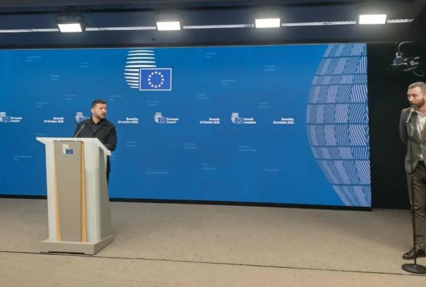 - Прес-конференція Володимира Зеленського у штаб-квартирі ЄС 24.10.2025
