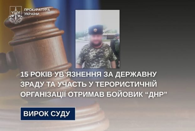 15 років ув’язнення за державну зраду та участь у терористичній організації отримав бойовик “днр”