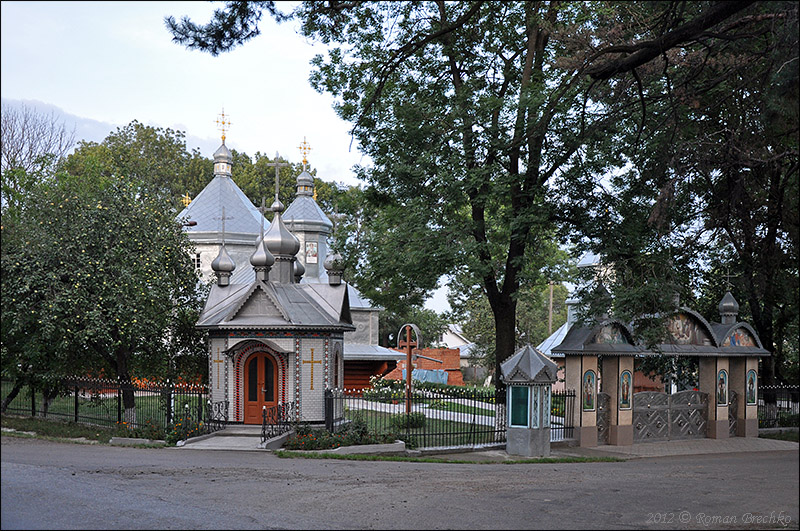 На храмове подвір”я можна потрапити через декоровану образами святих браму.