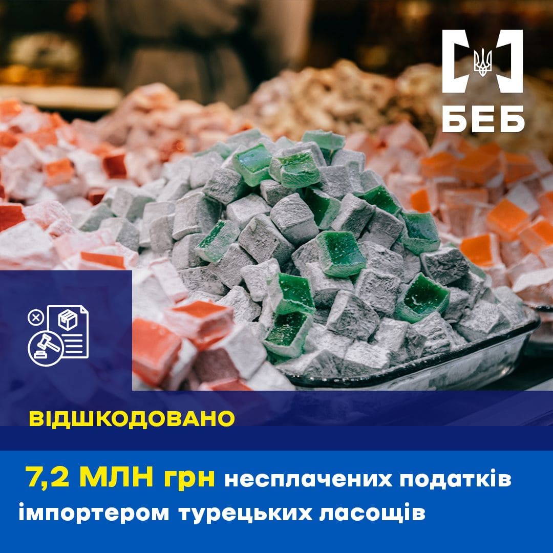 Детективи БЕБ викрили схему ухилення від сплати понад 7,2 млн грн податків під час імпорту турецьких ласощів