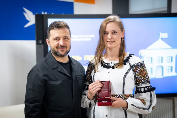 Відзнаку їй особисто вручив Президент України Володимир Зеленський під час зустрічі з освітянами з нагоди Дня працівників освіти.