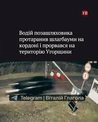 Пряма мова: “Ввечері 30 жовтня позашляховик марки Toyota Avensis здійснив незаконний перетин українсько-угорського кордону. На шаленій швидкості водій протаранив обидва шлагбауми у пункті пропуску “Велика Паладь” та потрапив на територію Угорщини.