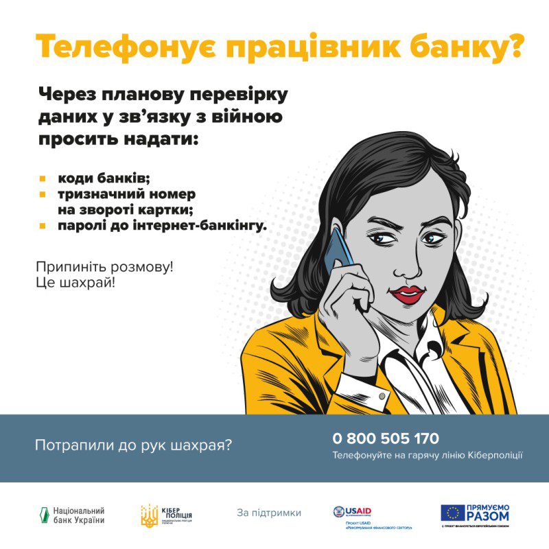– пам’ятайте: працівники правоохоронних органів чи банку ніколи не телефонують до громадян з проханням перераховувати гроші;