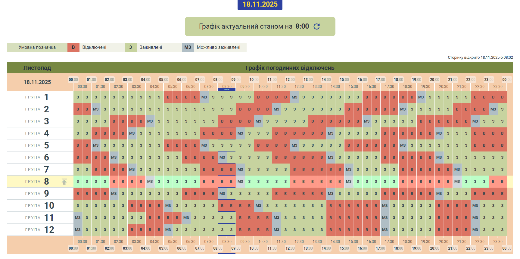 Орієнтовний графік заживлення для груп споживачів • 18.11.2025