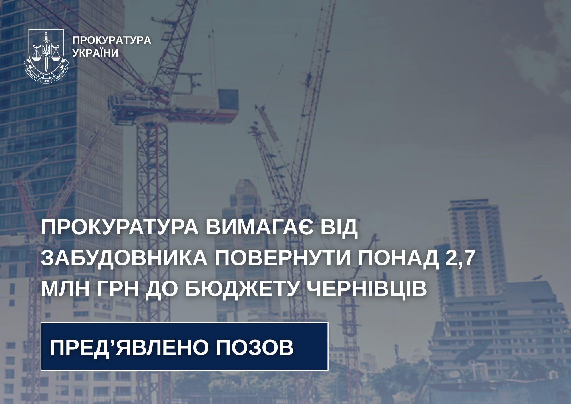 Прокуратура вимагає від забудовника повернути понад 2,7 млн грн до бюджету Чернівців